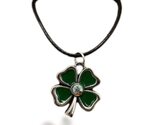 Michelle's Creatives 20 inch Silver and Green Four Leaf Clover on Black Waxed Co