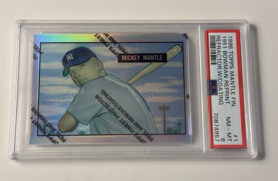 Mickey Mantle 1996 Topps FINEST WITH COATING 1951 Refractor REPRINT Card 1 PSA 8