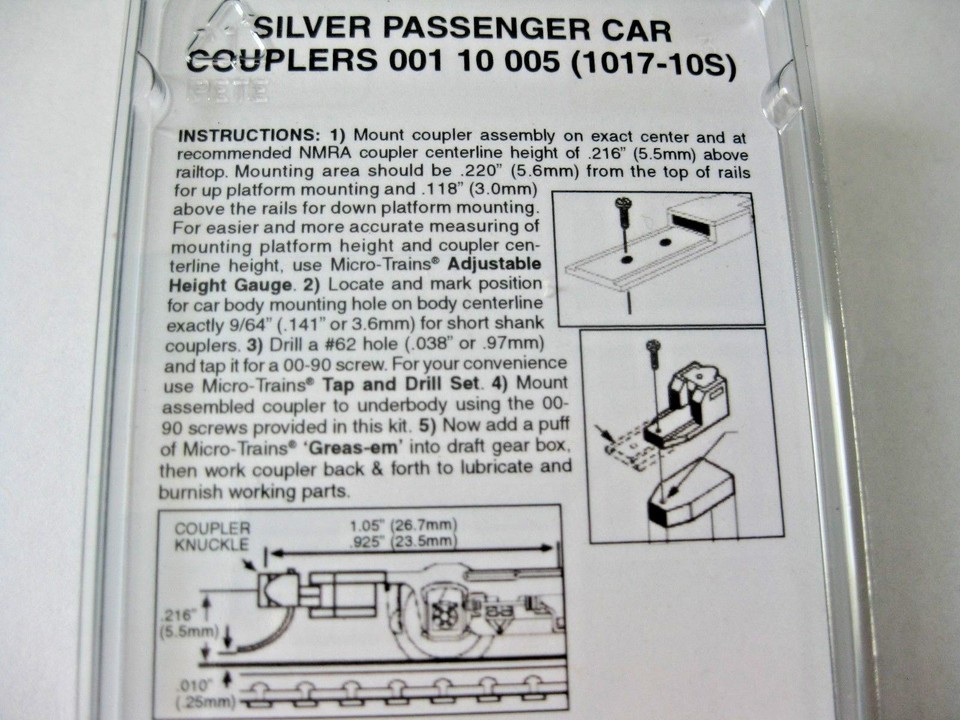 - Micro-Trains Stock #00110005 Silver Passenger Car Couplers for 1017 & 1018 Truck
