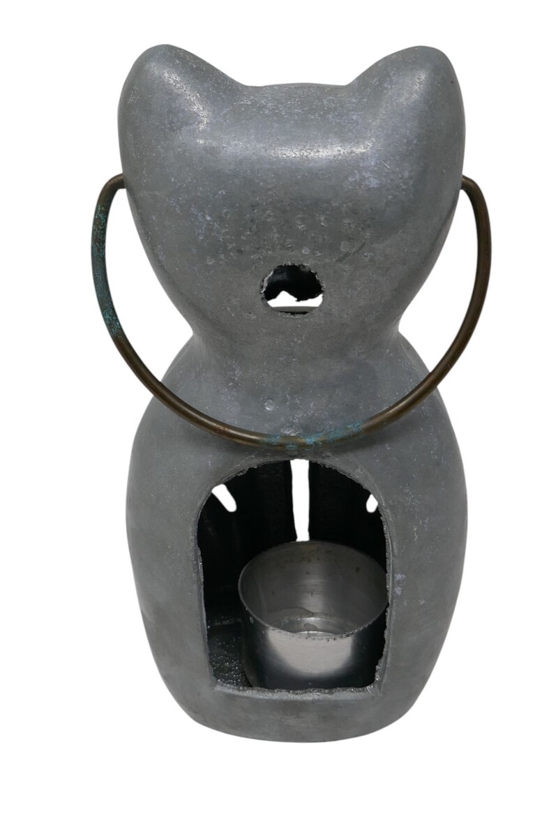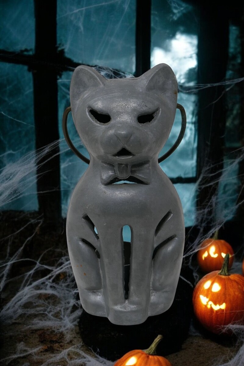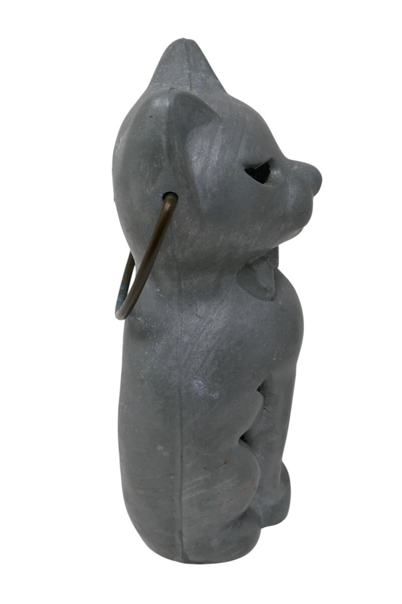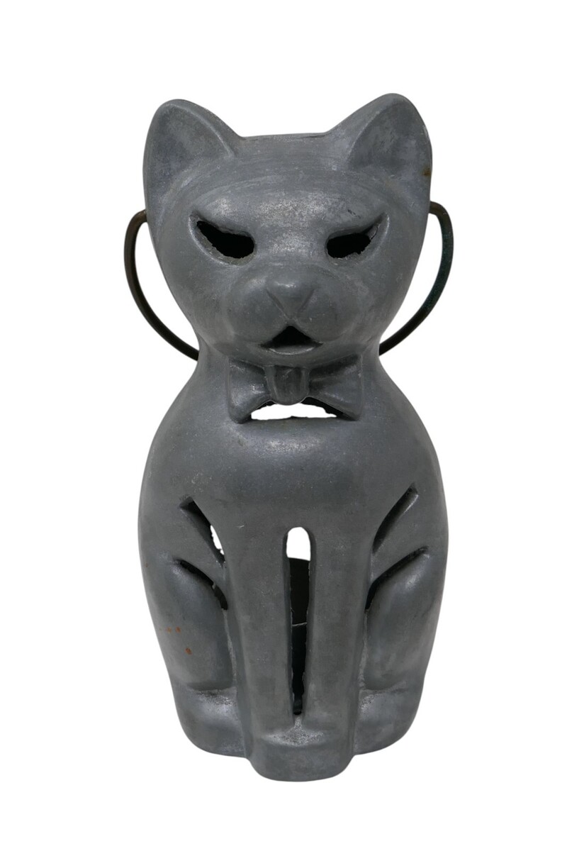 This 1940s cast metal cat lantern candle holder is a charming addition to any garden or indoor space. The lantern measures approx. 8.5" tall without the handle, which does have some patina. Comes with a tealight insert which may not have been original to the lantern. Its medium size and metallic silver finish give it a sleek and vintage appeal. Perfect for all occasions, this candle holder is suitable for mini candles and can be cleaned with a damp cloth. With a handle for easy carrying and its unique design featuring a cat lantern, this sculpture is sure to be a conversation starter. Ideal for collectors of decorative items, this original piece from the mid 20th century is a timeless treasure for any home. See photos for item condition, this is a picture of the actual item. All reasonable offers considered!! **Payment** We do expect payment within 48 hours of the purchase. If for some reason you need a couple of extra days, please let us know. **Feedback** Once you have received your item, if you are satisfied, please leave feedback. We are happy to leave feedback for you after you have left feedback for us to let us know that you have received your item and the transaction is complete. Please contact us before leaving feedback if there is a problem. **International Buyers ? Please Note** Import duties, taxes, and charges are not included in the item price or shipping cost. These charges are the buyer's responsibility. Please check with your country's customs office to determine what these additional costs will be prior to bidding or buying. Check out our store for more deals!!