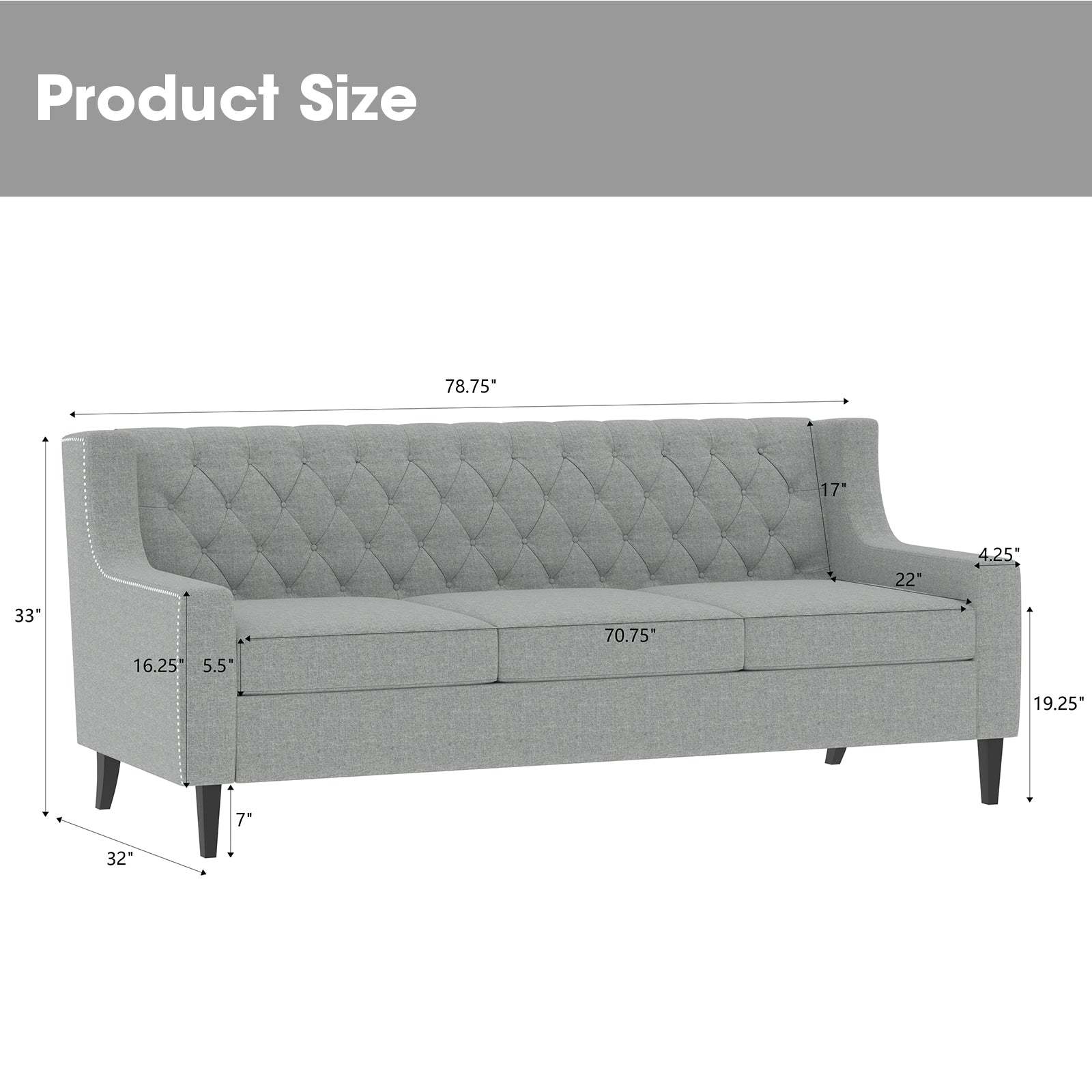 Mid-Century Modern 78.75" 3-Seater Sofa