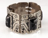 Mid Century Plateria FARFAN Sterling Silver Onyx Wide Panel Bracelet 7.25"