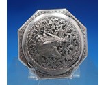 Wonderful Middle Eastern sterling silver compact with mirror featuring a chased figural design and scrollwork. This piece measures 3" tall x 3" in diameter. It is not monogrammed and is in good vintage condition. Exceptional!