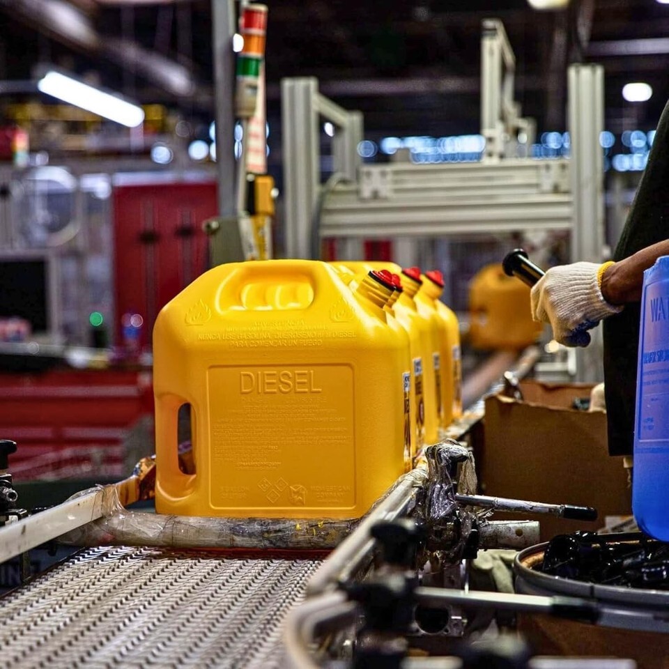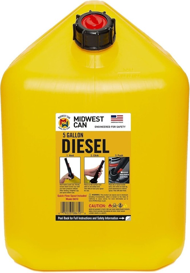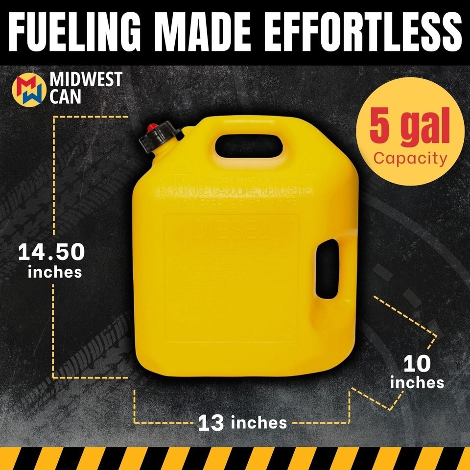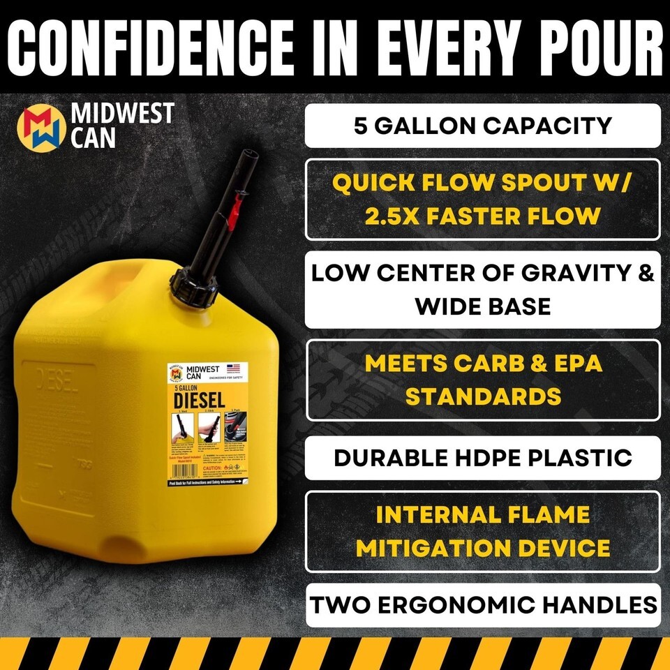 - Midwest Can 8610 Safe-Flo Auto Shut Off 5 Gallon Diesel Can Yellow Plastic Fuel