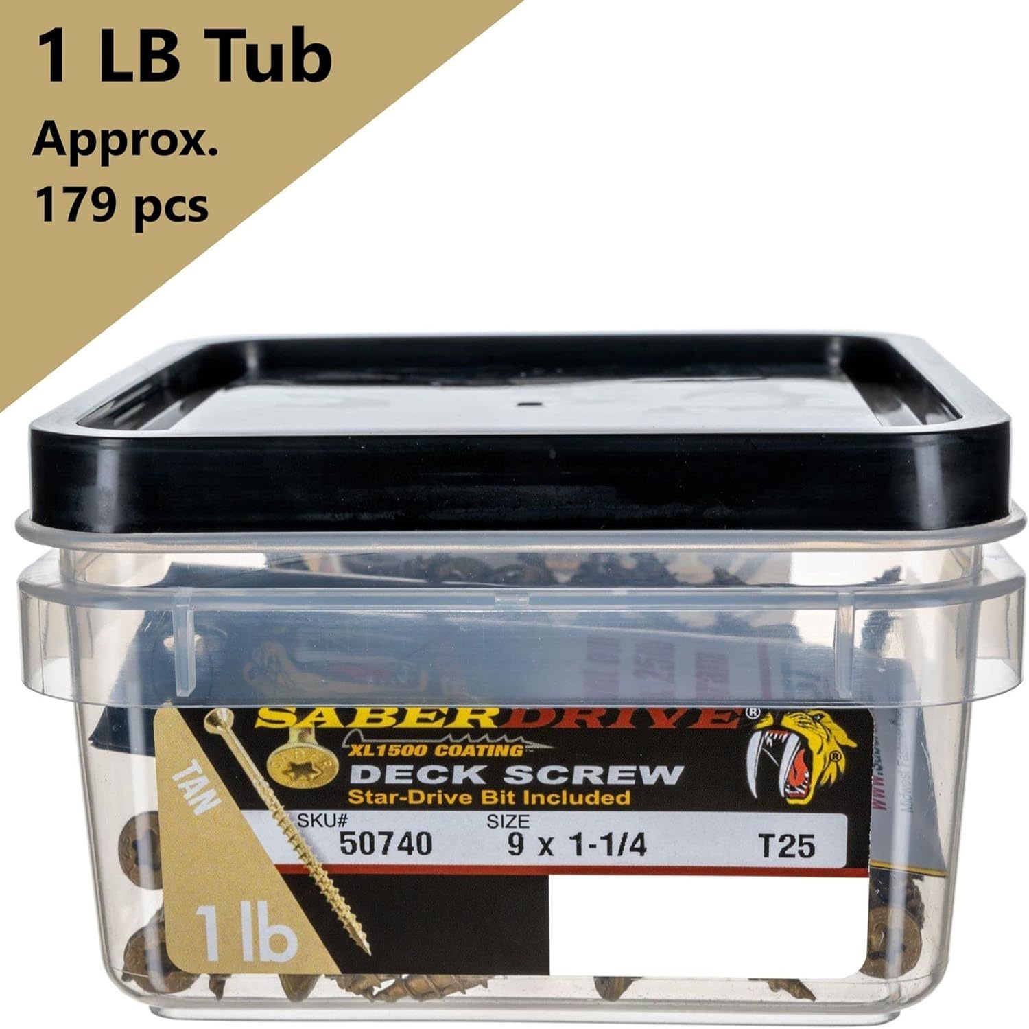 Saberdrive Tan XL1500 Coated Exterior Star Drive Multi-Purpose Deck Screws, 5lb,