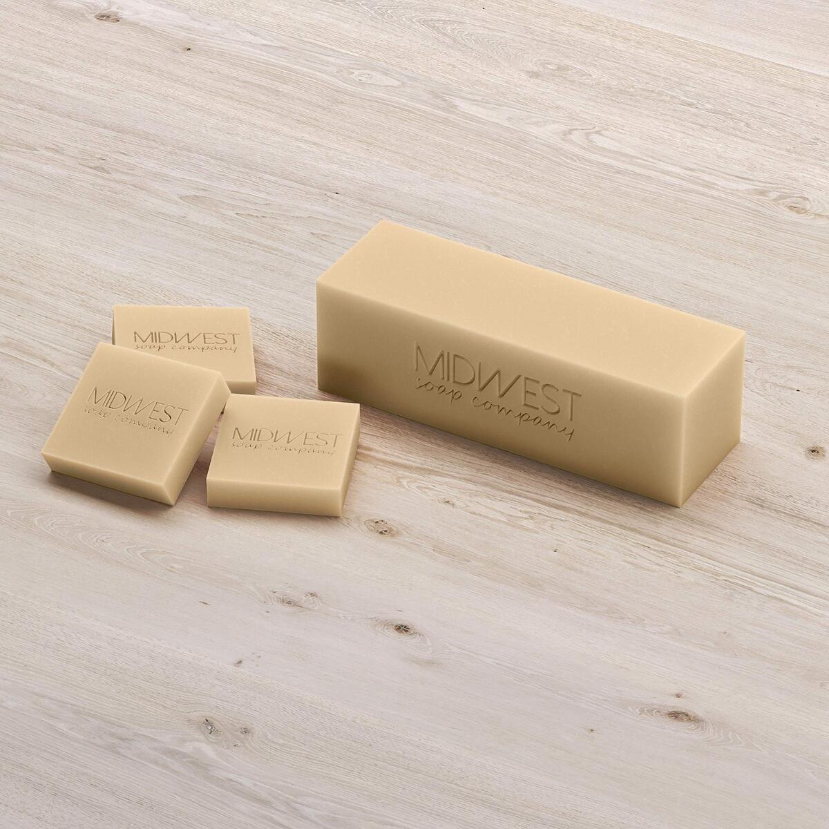The Midwest Soap Company's Soap Loaves are lovingly handcrafted with 100% natural ingredients: custom oil blends, beautiful natural colors, and pure plant oils and butters. Our natural handmade soaps have none of the nasty irritating ingredients found in many commercial soaps ... if your skin has been suffering from these nasty ingredients give it a break and enjoy the wonderful creamy texture of our handmade soaps and notice the difference! Our soaps are made in small batches by skilled and amazing soap artisans. Each loaf weighs roughly 2.8-3 pounds and can be cut into 8-10 bars of soap.