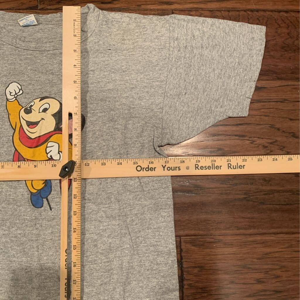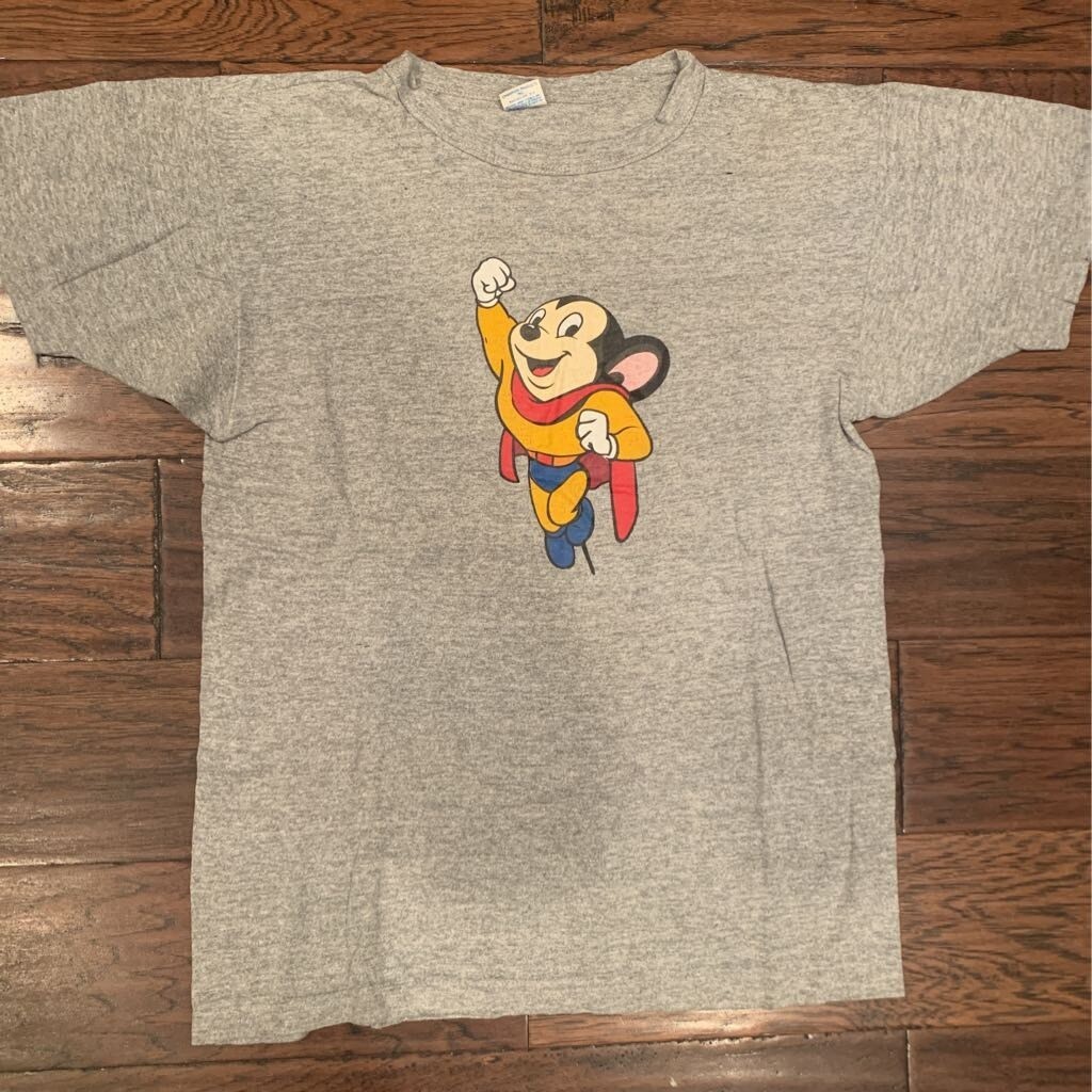 Mighty Mouse Champion Graphic T-shirt Gray Yellow Heathered Crew Neck Tee L