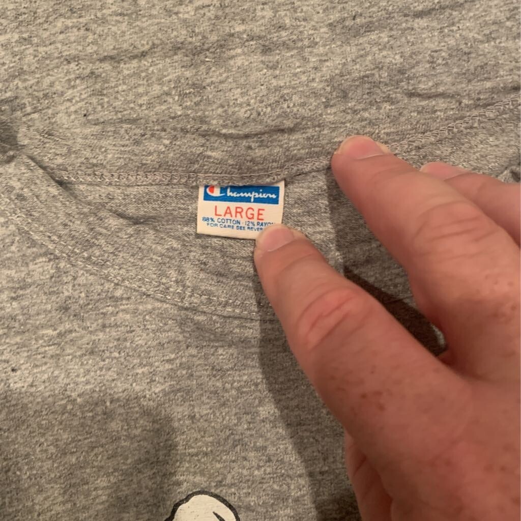 - Mighty Mouse Champion Graphic T-shirt Gray Yellow Heathered Crew Neck Tee L