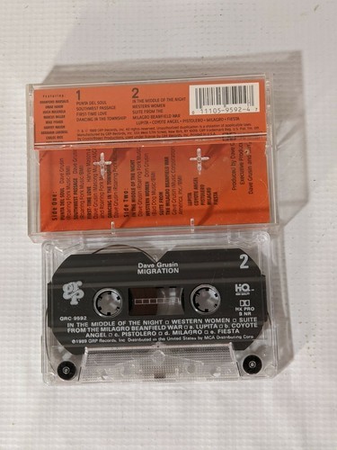 A vendre est un Copie de cassette audio de Migration par Dave Grusin sur les enregistrements GRP. L'album a les chansons Punta del Soul et au milieu de la nuit.