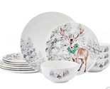 Mikasa Dinnerware Set Christmas 12-Piece Serves 4 Woodsy Winter Bone China Deer