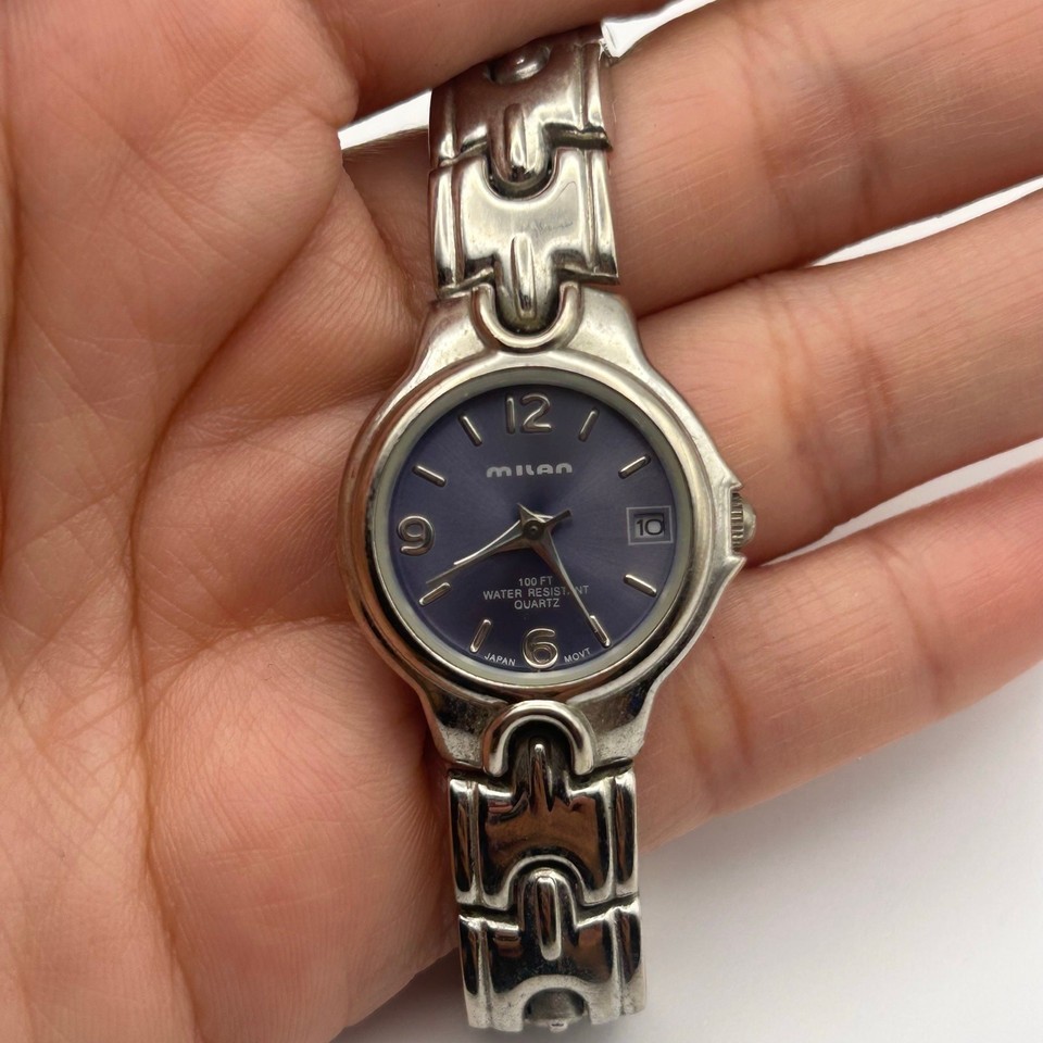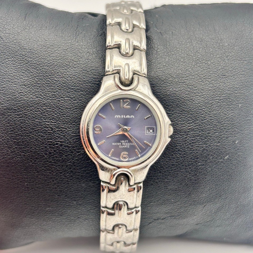 This beautiful Milan silver tone women's watch is in excellent working condition. It features a new battery and a 23mm stainless steel band. It's a stylish and reliable timepiece that's perfect for everyday wear or special occasions. Get it now!