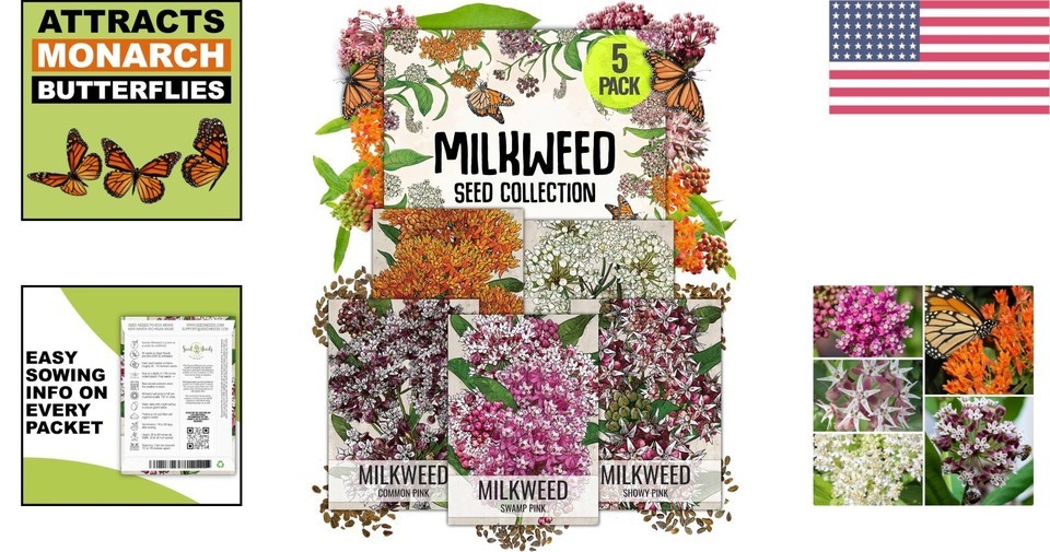 - Milkweed Seed Packet Collection - 5 Heirloom Varieties for Monarch Butterflies