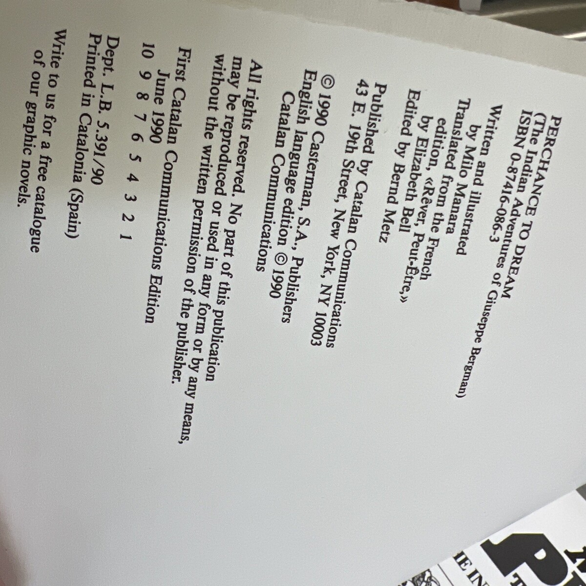 - Milo Manara Perchance To Dream Comic Paperback Graphic First Edition 1990