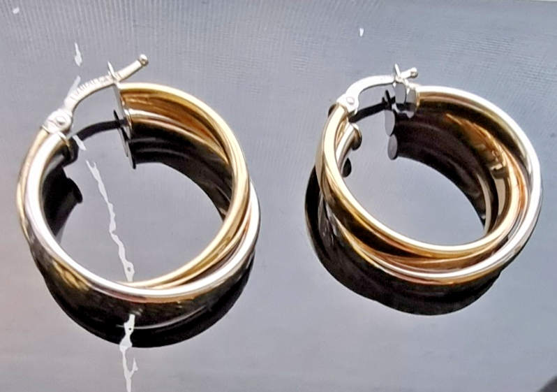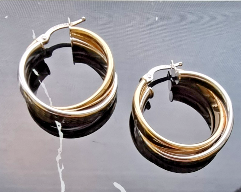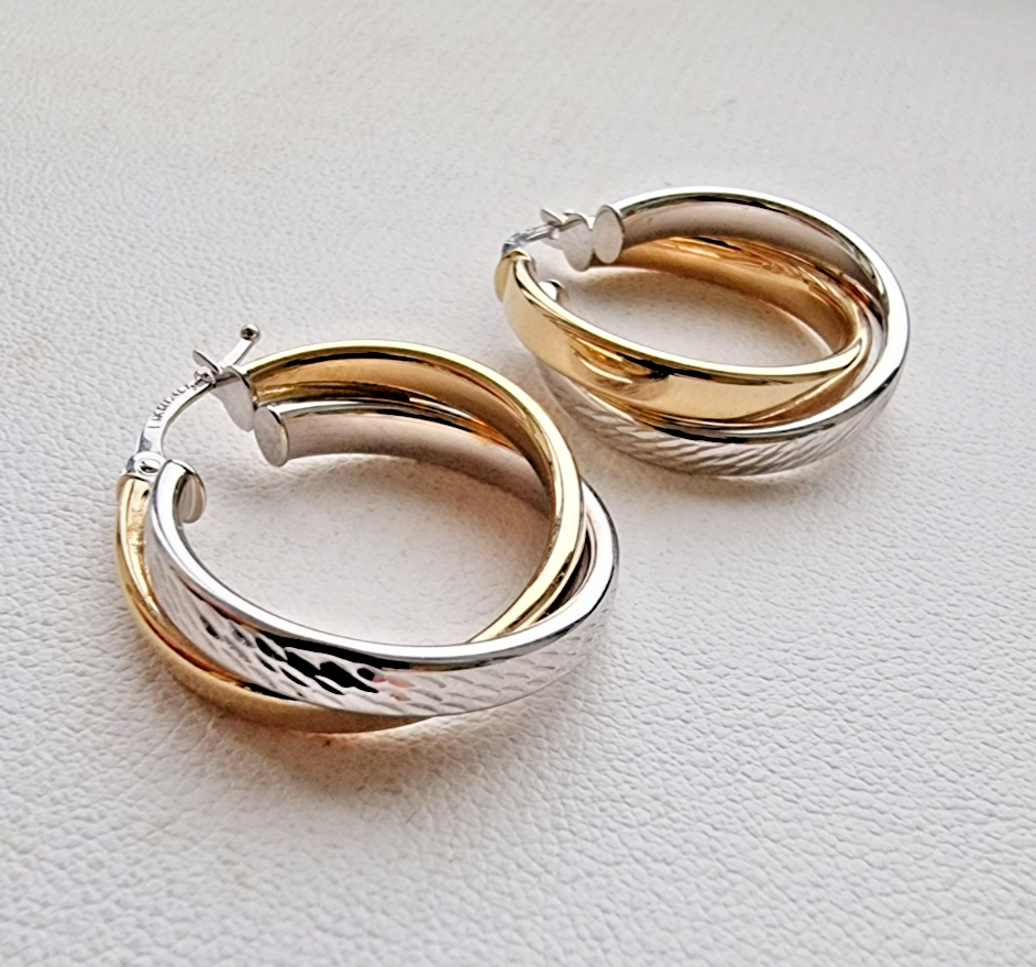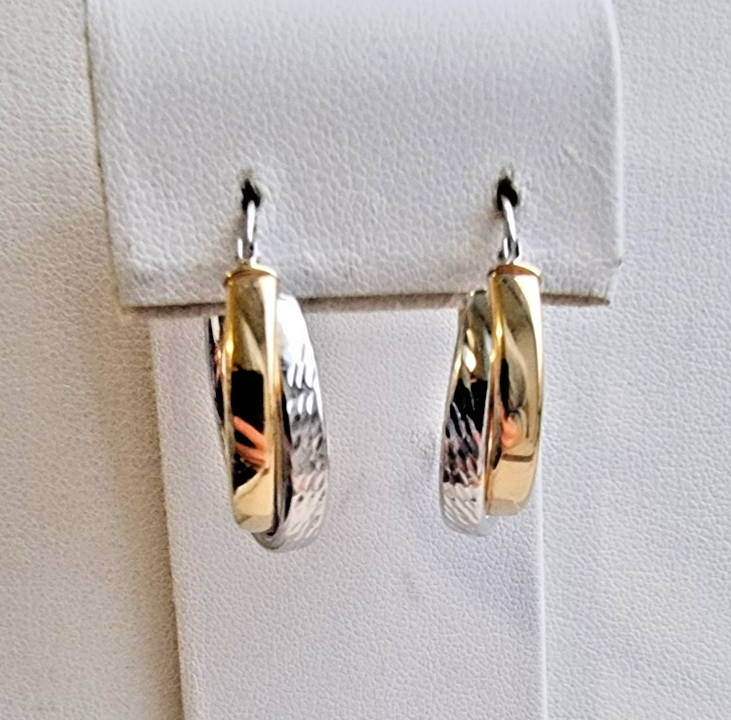 - MILROS ITALIAN 14K TWO TONE GOLD DOUBLE HOOPS EARRINGS 3.4 g