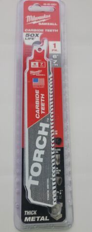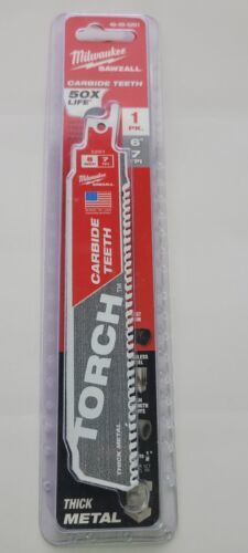 You are Buying a brand New And Factory Sealed Milwaukee 6 in. 8 TPI Torch Carbide Teeth Metal Cutting SAWZALL Reciprocating Saw Blade (1-Pack) Model #48-00-5201.... carbide per tooth for extreme life 7 TPI for fast, efficient cutting in thick and extreme metals Carbide teeth for 50X life in thick metal...