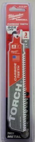- Milwaukee 48-00-5301 6 inch 7 TPI Carbide Teeth Torch Sawzall Blades