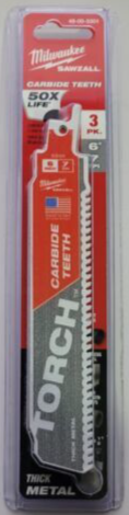 You are Buying a brand New And Factory Sealed Milwaukee 6 in. 8 TPI TORCH Carbide Teeth Thick Metal Cutting SAWZALL Reciprocating Saw Blade (3-Pack) Model # 48-00-5301..... Each tooth has 25% more carbide than leading carbide competitors. An optimized tooth design ensures these blades deliver extreme life in thick and extreme metal cutting applications.
