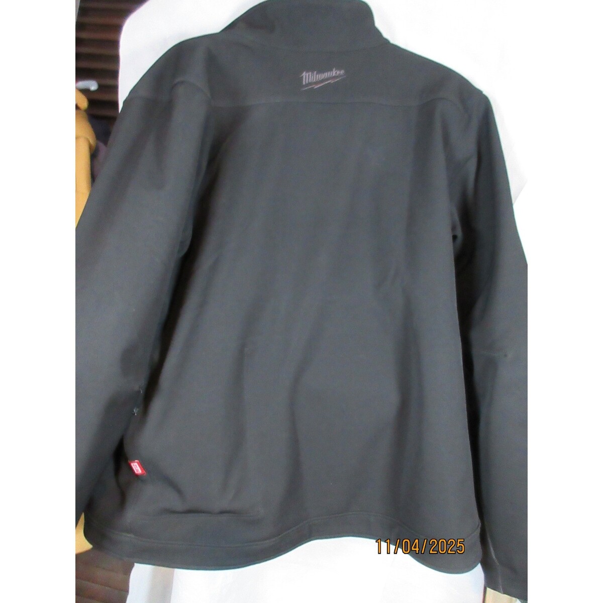 Includes set of 2 brand new batteries and a new power source which will not only heat the jacket but will charge your cell phone. Embrace unparalleled warmth and rugged durability with this Milwaukee heated soft shell jacket. Engineered for performance, it envelops you in a comforting embrace, banishing the chill with its integrated heating technology. Feel the warmth radiate, keeping you focused and comfortable whether you're tackling tough jobs or enjoying the great outdoors. The sleek, black design offers a modern aesthetic, while the thoughtful construction provides freedom of movement. Discover the ultimate fusion of workwear functionality and essential warmth, perfect for chilly workdays, outdoor adventures, or simply staying cozy on a cold evening.