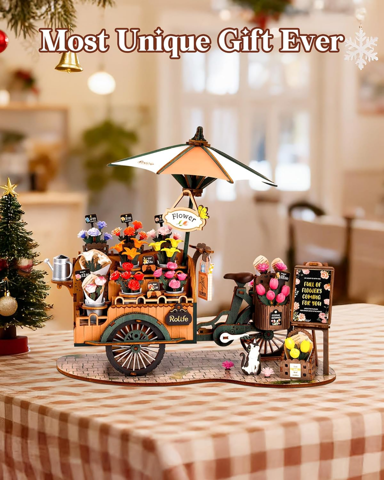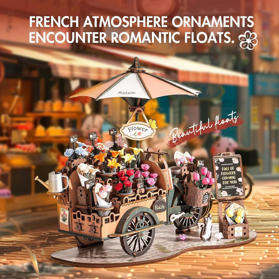 - Mini 3D Wooden Flower Cart Puzzle for Adults – Model Building Kit Decor