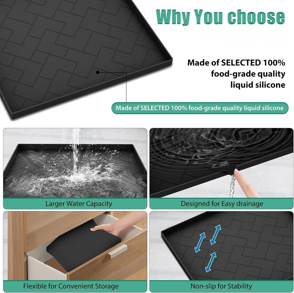 - Mini Fridge Silicone Mat Drip Tray, 19.7*19.7in Leak-Proof Non-Slip Floor Pro...