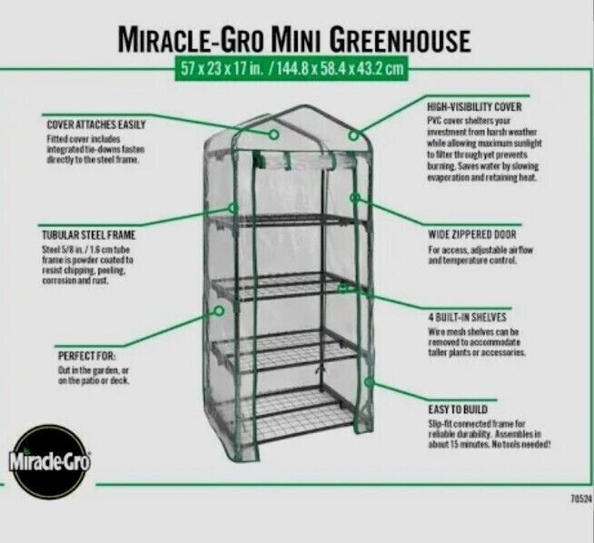 The Miracle-Gro Mini Greenhouse is ideal for gardeners looking to get an early start on their growing season. It provides a controlled environment for seedlings and young plants, protecting them from frost and harsh weather while allowing them to grow strong and healthy. Perfect for flower beds, vegetable gardens, and herb growing, this greenhouse is great for anyone seeking to grow fresh produce right at home. Whether you want to extend your gardening season in the spring and fall or need a place to start plants indoors, this greenhouse offers a versatile solution that makes it easier to grow what you eat.