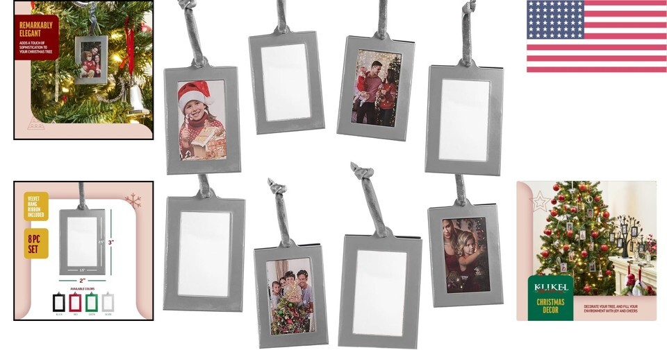 - Mini Silver Photo Ornaments - 8 Vertical Frames for Christmas Trees and Gifting