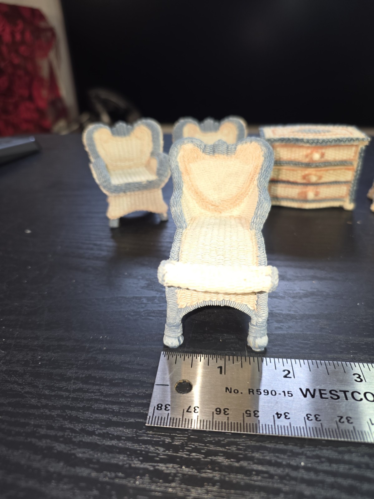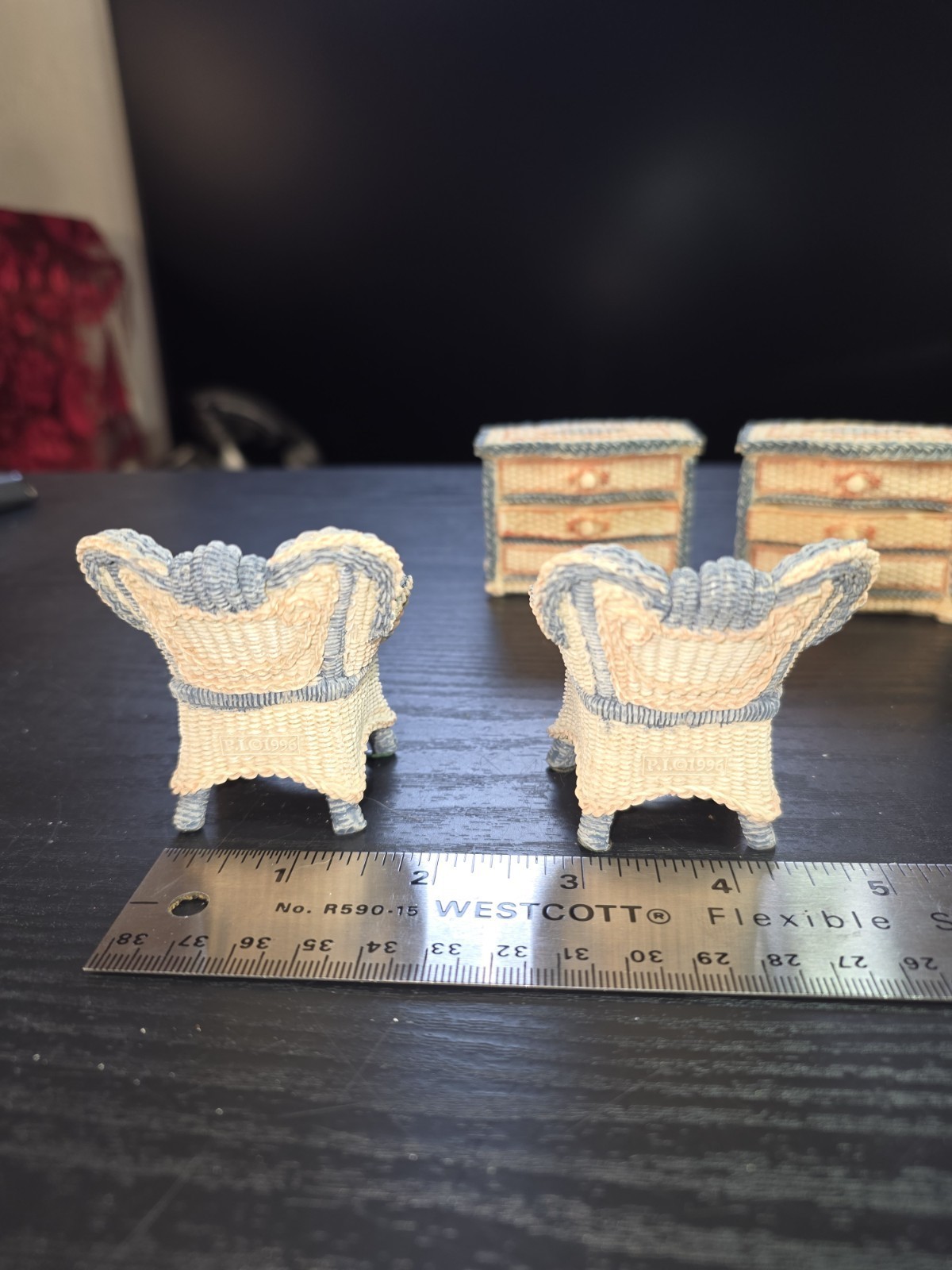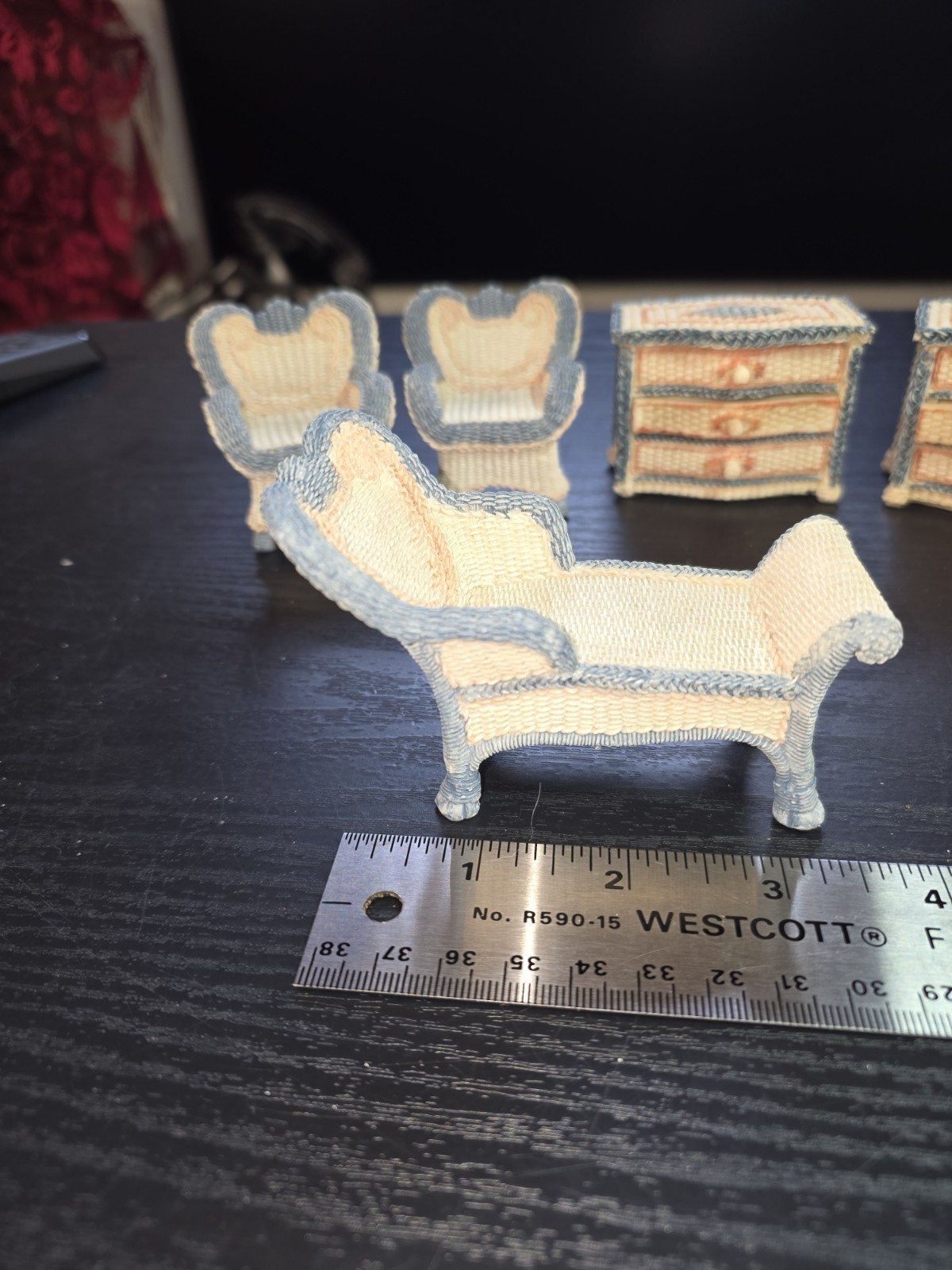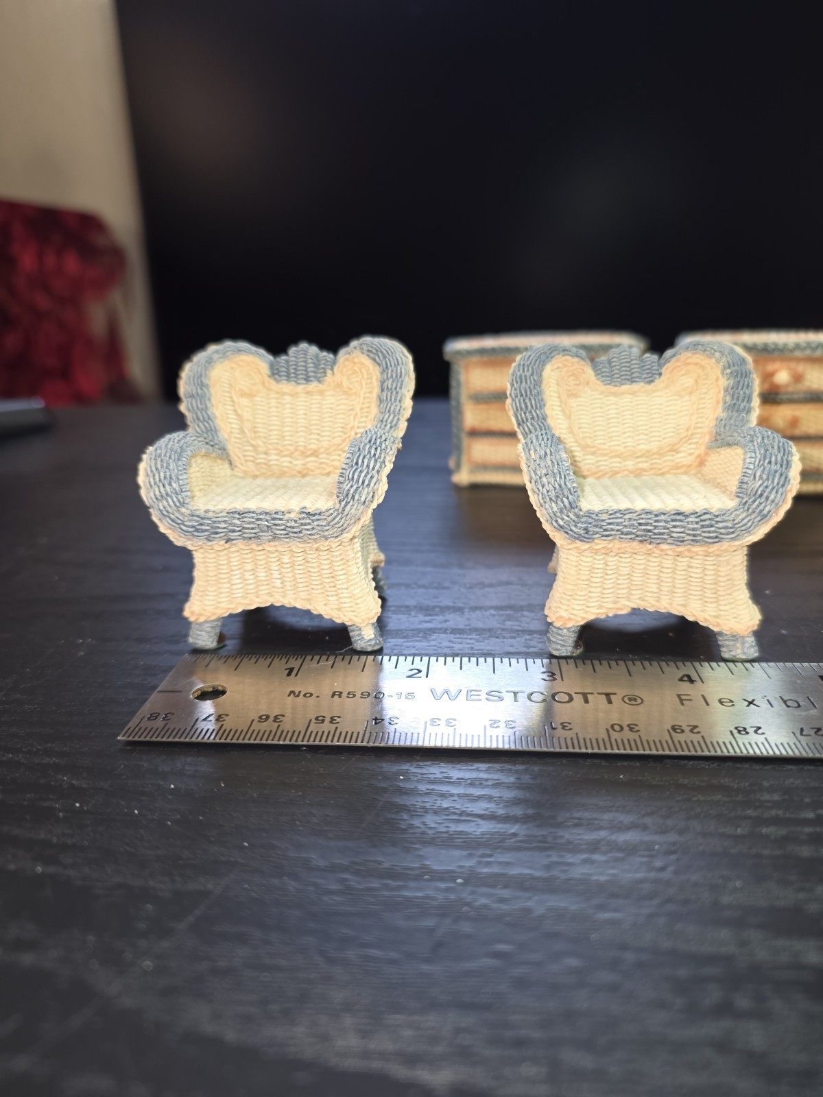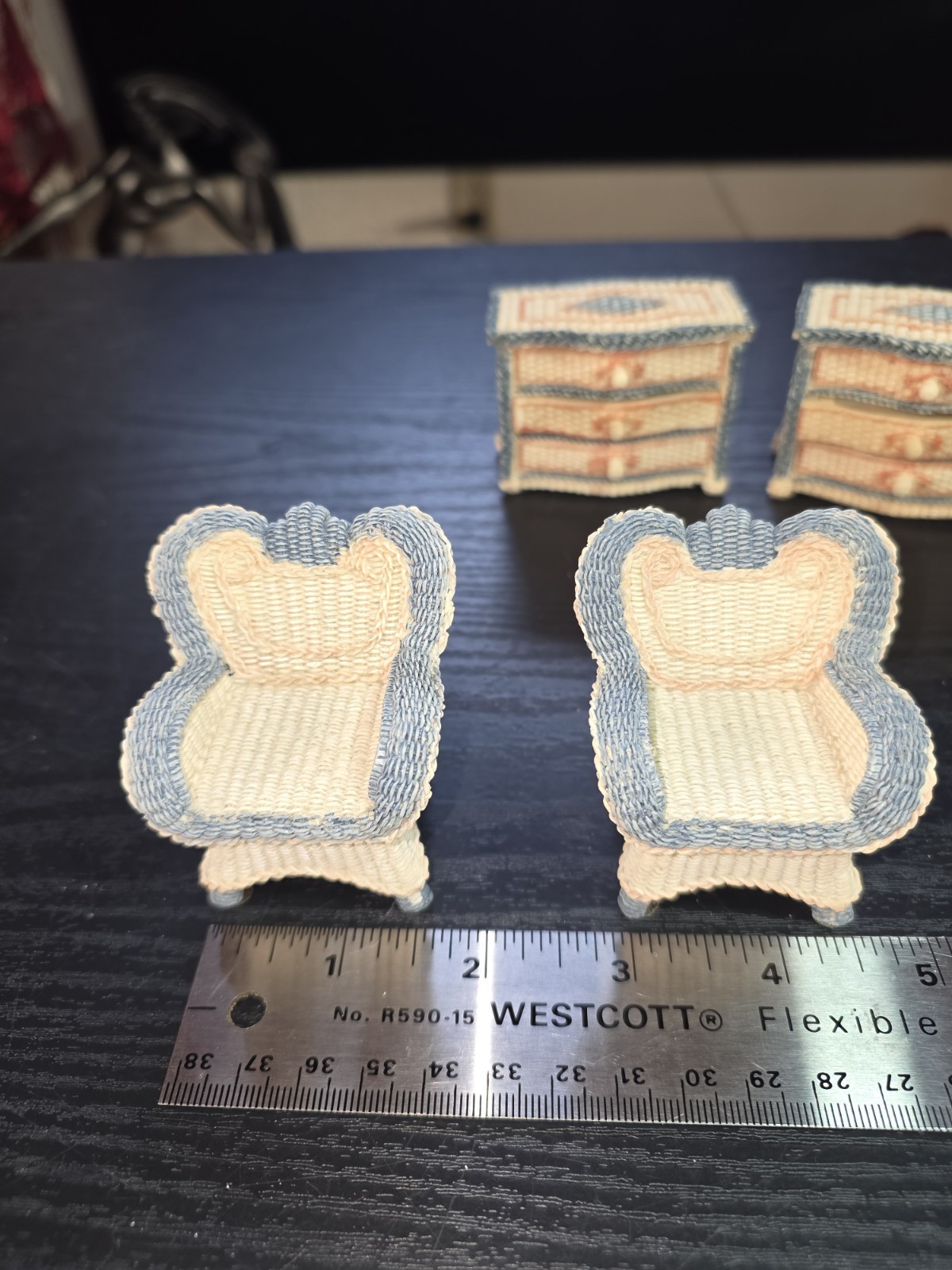 - Miniature Dollhouse Resin Wicker P.L. 1996 1:12 Chairs Chaise Sette Dressers