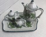 - Miniature Porcelain Vintage Tea Set Tray Tea Kettle Sugar and Creamer Bowl
