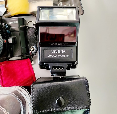 - Minolta 35mm Camera Maxxum 7000 w/ Accessories Flash Cleaner Film Vintage ELEC