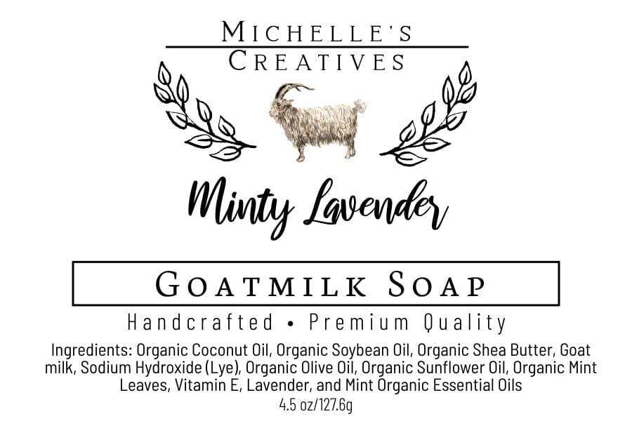 Ingredients: Organic Coconut Oil, Organic Soybean Oil, Organic Shea Butter, Goat milk, Sodium Hydroxide (Lye), Organic Olive Oil, Organic Sunflower Oil, Organic Mint Leaves, Vitamin E, Lavender, and Mint Organic Essential Oils