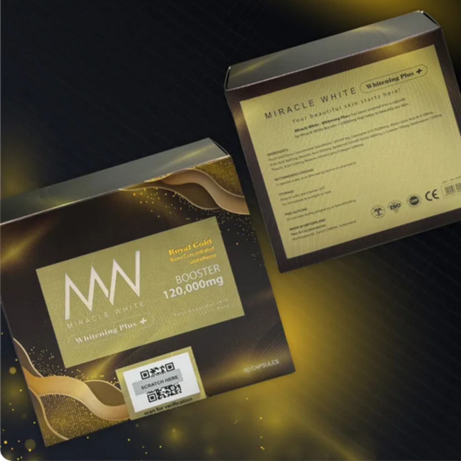 Miracle White 120,000mg Booster Whitening Plus+ 60 Capsules nano Glutathione-DHL