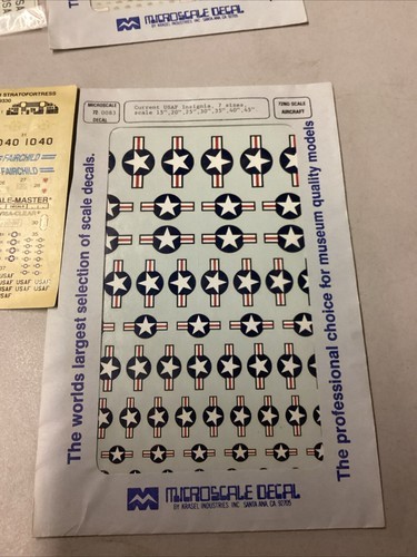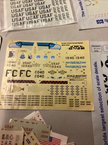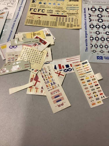 There are 4 items that are sealed in package. There is 1 that is brand new in an open package. There?s 1 new sheet without a package and there?s 21 small sheets that are loose. These loose ones can be used for planes, helicopters, trains or ships. These loose ones are mostly new but in fair condition. They will most likely need to be glued onto whatever item you?re using it for.
