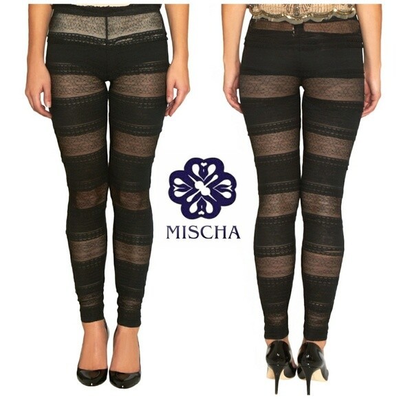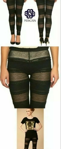 This sale is for one (1) pair of Mischa Barton brand leggings Women's Size Small Black in Color Inseam measures approximately 30" Waistband measures appear 12" laying flat Waistband height measures approximately 1.5" Front rise measures approximately 8" Bottom leg opening measures approximately 4.5" laying flat Thigh area measures approximately 14" laying flat (***All measurements are approximate and leggings are very stretchy) Medium weight Semi sheer Alternating horizontal banded panels of intricately detailed lace mesh and lace ruffles 52% Nylon ~ 40% Cotton ~ 8% Spandex Leggings are brand new ~ never used Please view photos for a good description of the leggings Thank you!