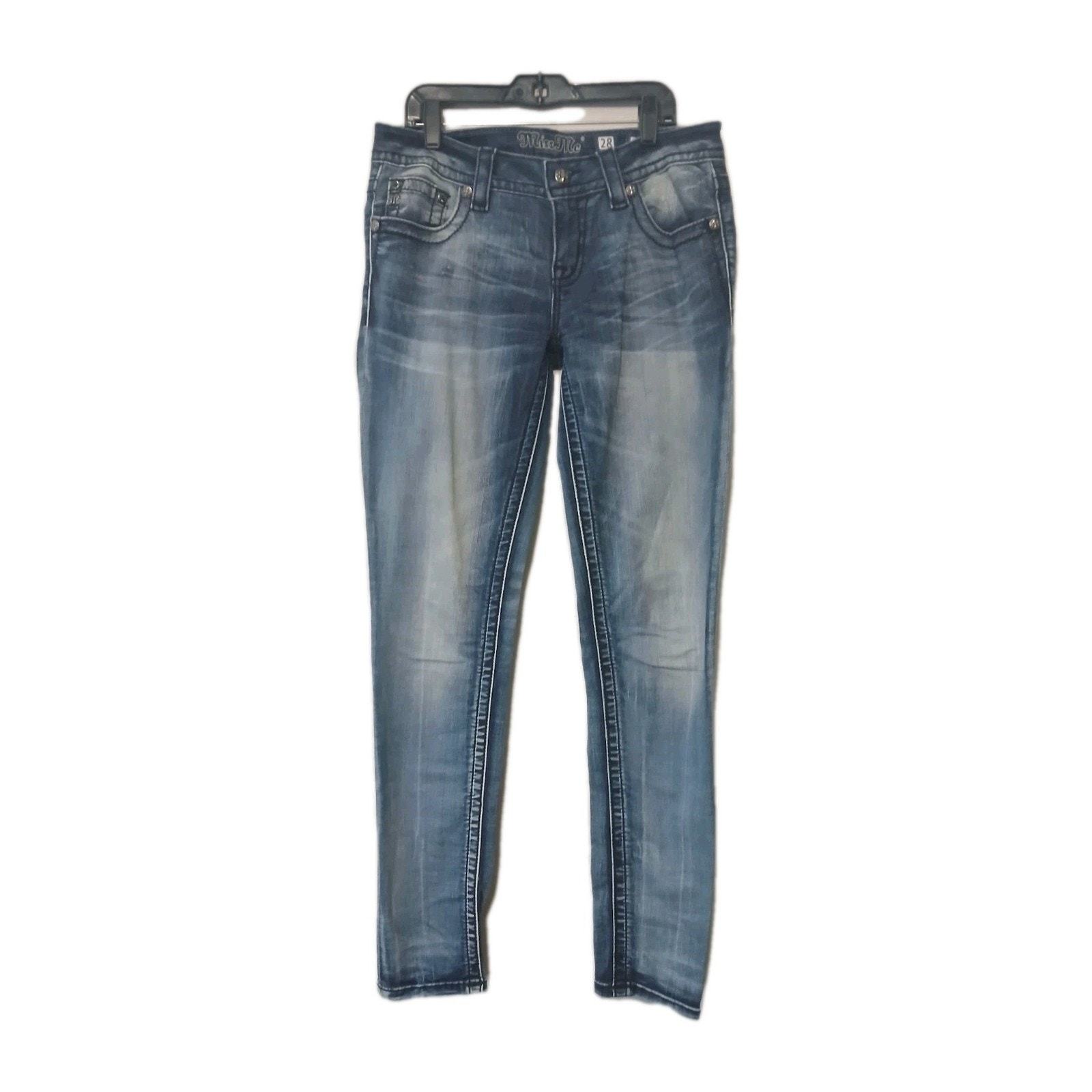 Miss Me Jeans Womens Size 28 Blue Denim Cuffed Skinny Embellished