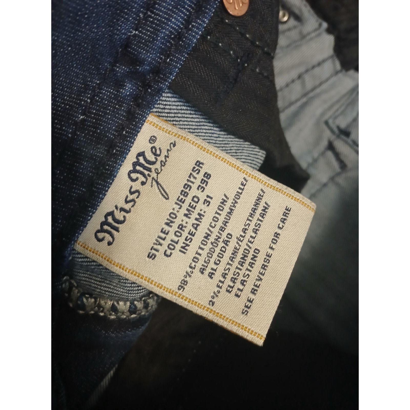 Elevate your style with these Miss Me jeans for women. These cuffed skinny jeans come in a beautiful blue denim color and are embellished with studded, button, embroidered, sequin, and logo accents. They feature a 5-pocket design, a zip and button closure, and belt loops. Crafted from a combination of spandex and cotton, these jeans are machine washable and perfect for any season. The classic fit and solid pattern make them a must-have in your wardrobe. These jeans are a great addition to your rock-inspired look and are perfect for any occasion.