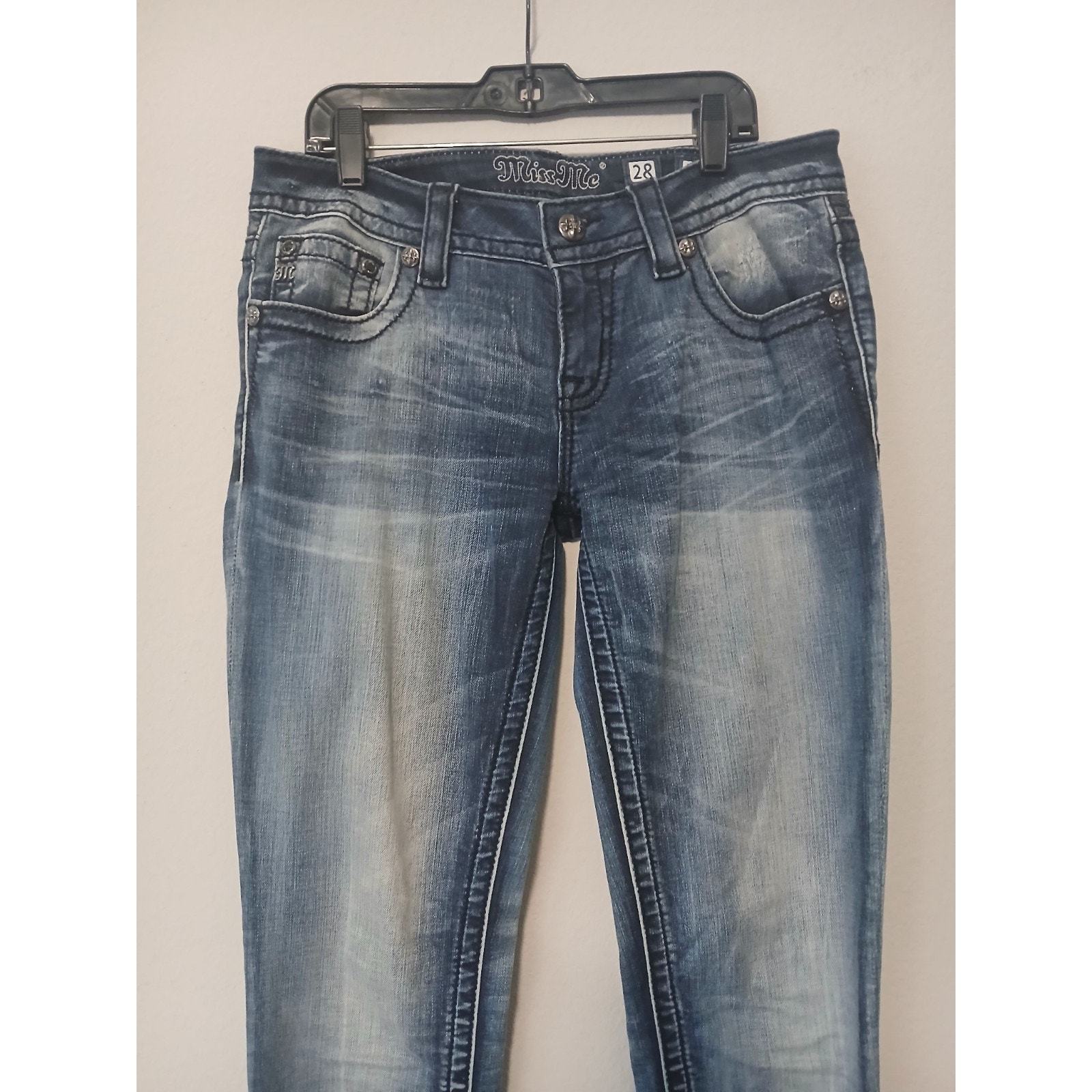 Primary image for Miss Me Jeans Womens Size 28 Blue Denim Cuffed Skinny Embellished