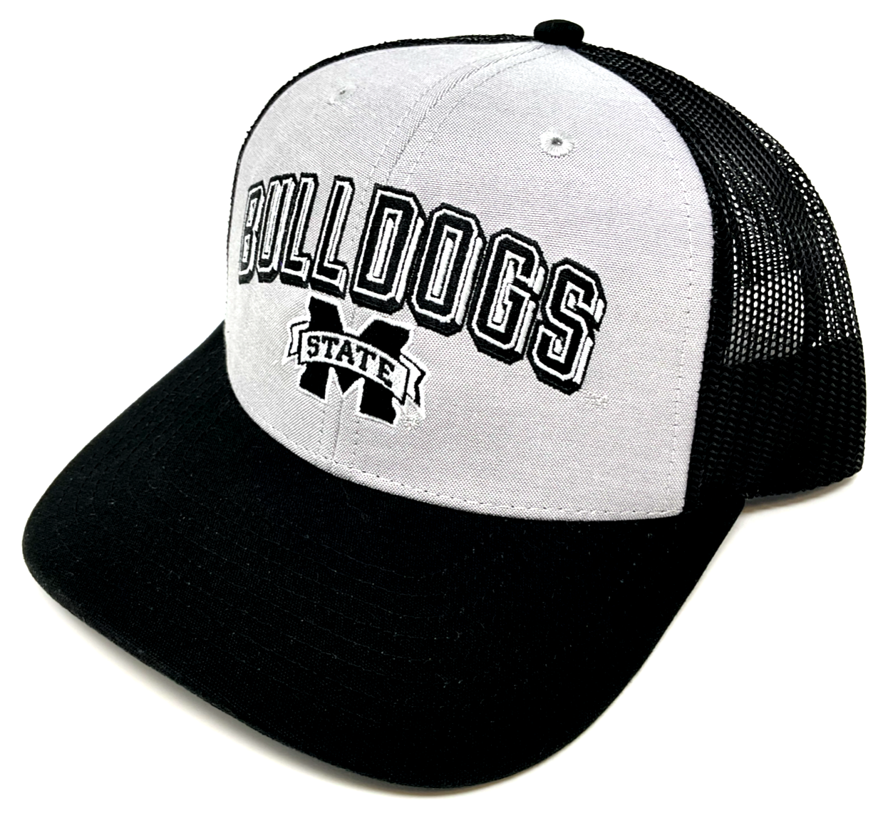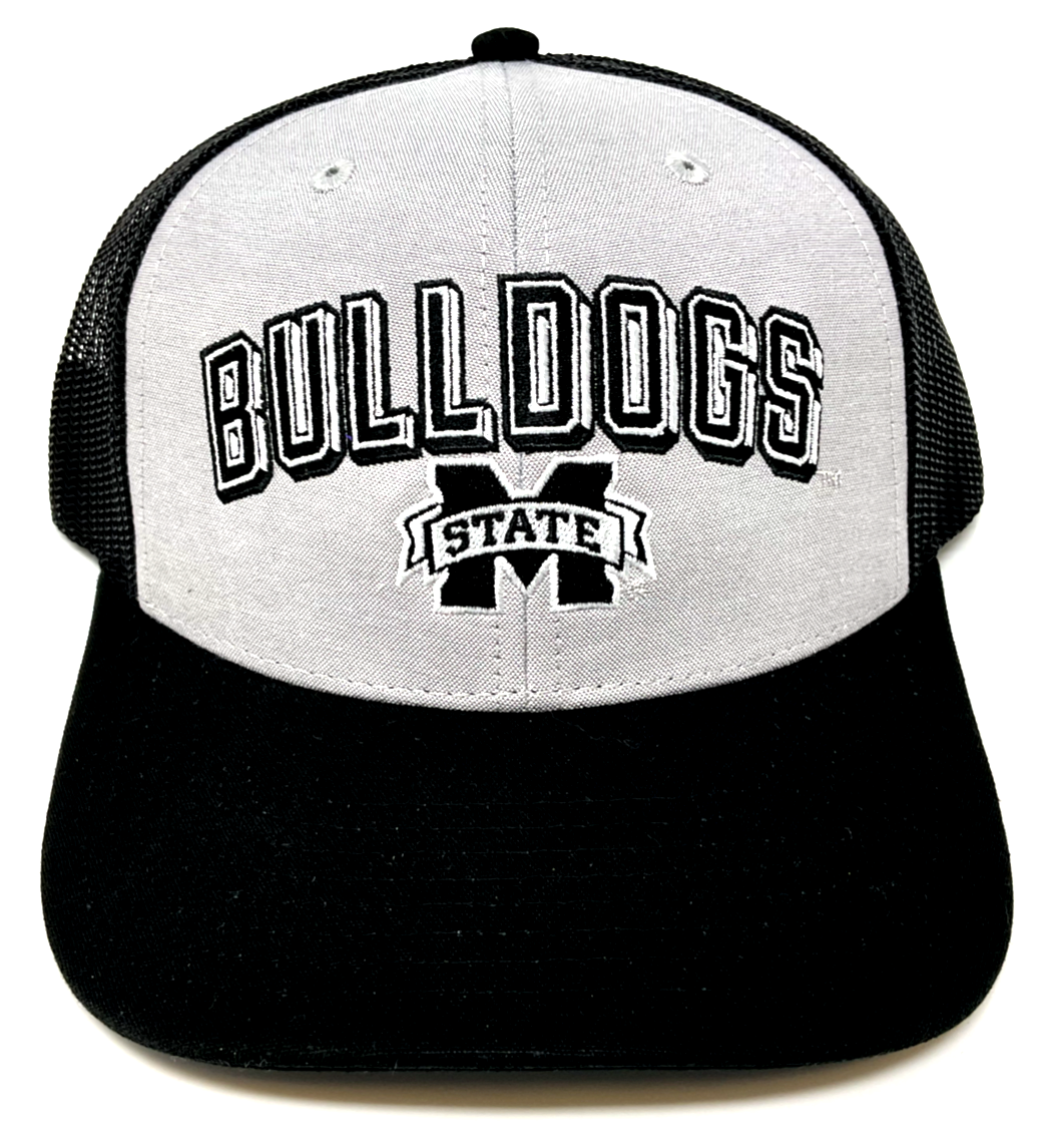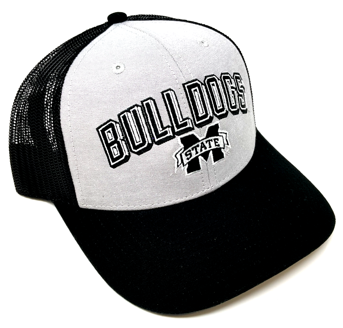 MISSISSIPPI STATE UNIVERSITY BULLDOGS GREY BLACK MESH TRUCKER SNAPBACK HAT CAP