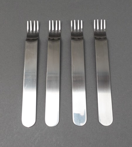 Combining the stylish good looks of a classic cutlery set with the more contemporary touch of matte stainless steel, this five piece set would grace any sophisticated dining table. Designed in 1941, Mitra uses its distinctive shape as its only decorative feature giving the knives, forks and spoons a timeless air.