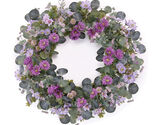 Brighten up your space with this Mixed Daisy Floral Thistle Wreath. Featuring soft purple and pink daisies, mixed foliage, and delicate thistle accents, this 22 wreath brings a fresh, natural vibe to your home. The eucalyptus leaves and wired stems add texture and versatility, making this wreath perfect for any room. Display it on your front door to welcome guests, in your entryway for a pop of color, or above your mantle for a charming, nature-inspired touch. Measures 22 inches across when branches are extended and fluffed.