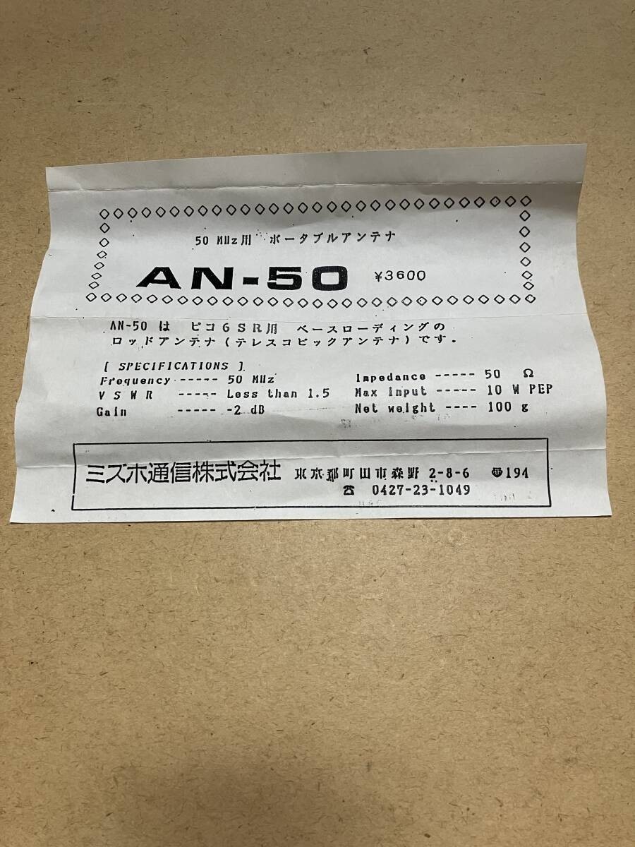 - Mizuho Picotra Pico AN-50 50MHZ band Rod antenna BNC