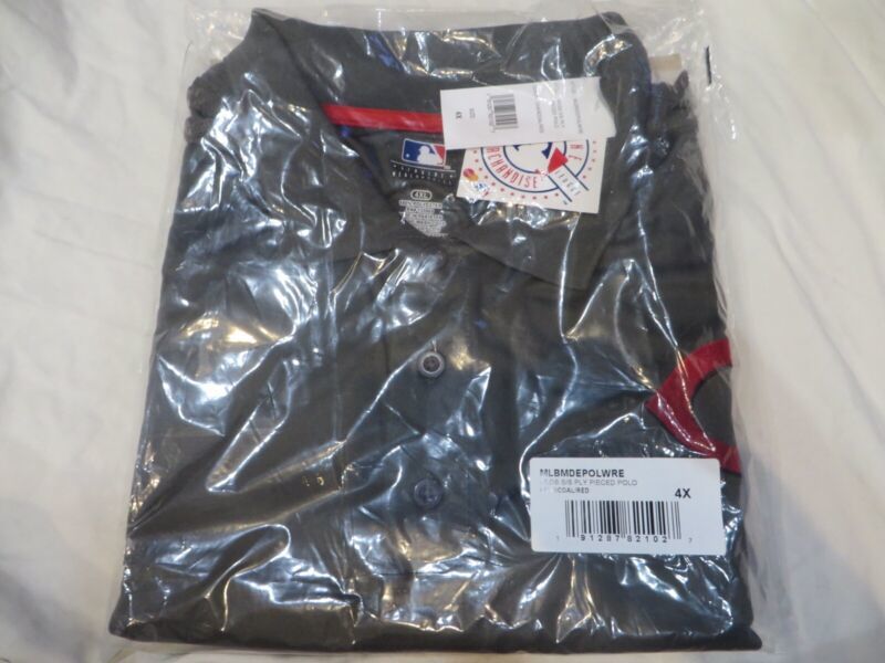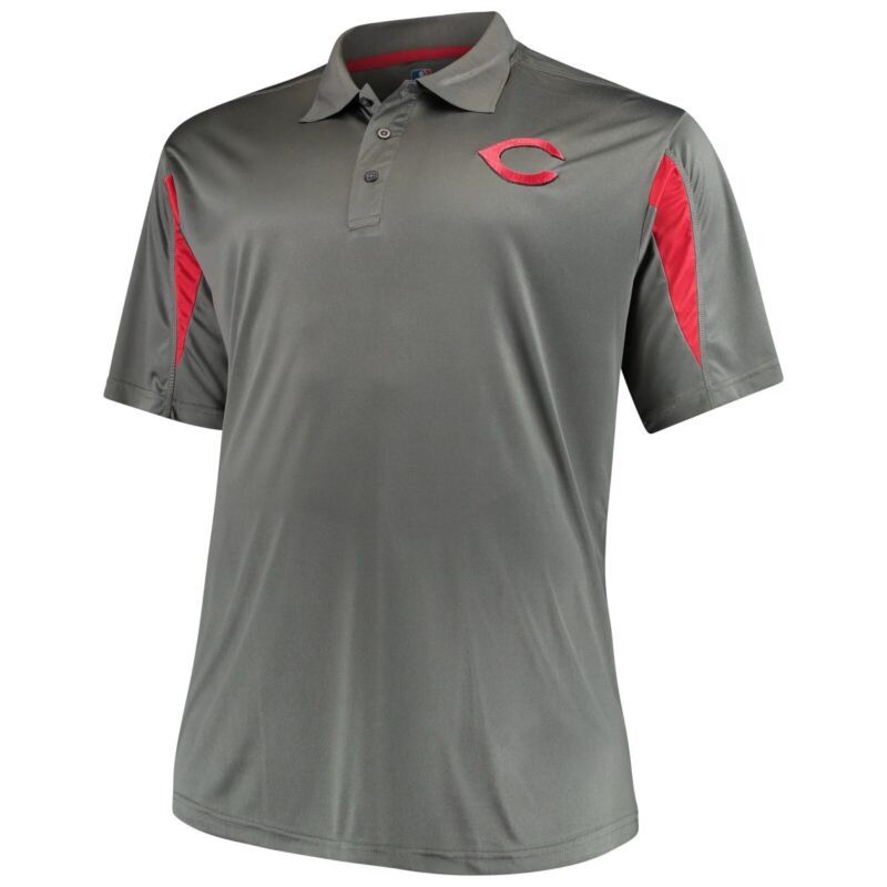 You are bidding on a new with tags Cincinnati Reds polo shirt in adult size 4XL. The shirt is dark gray with a red stripe on the arm and on the back. The shirt has a red embroidered Cincinnati "R" on the left side. The shirt is by Majestic. Great for any fan.
