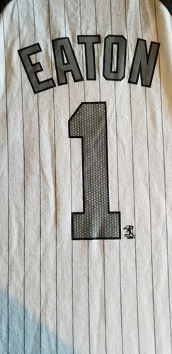 MAJOR LEAGUE BASEBALL PLAYERS CHOICE SHORT SLEEVED TEE GIRL'S SIZE XL (14/16) MEASURES APPROXIMATELY 15" FROM ARMPIT TO ARMPIT MEASURES APPROXIMATELY 25" FROM BACK OF COLLAR TO HEM 100% COTTON TEE, SLEEVES ARE POLY/COTTON "WHITE SOX" GLITTERY ON THE FRONT SIDE EATON WITH GLITTERY #1 ON THE BACK SIDE GRAY SLEEVED TEE BRAND NEW WITH TAGS FREE SHIPPING