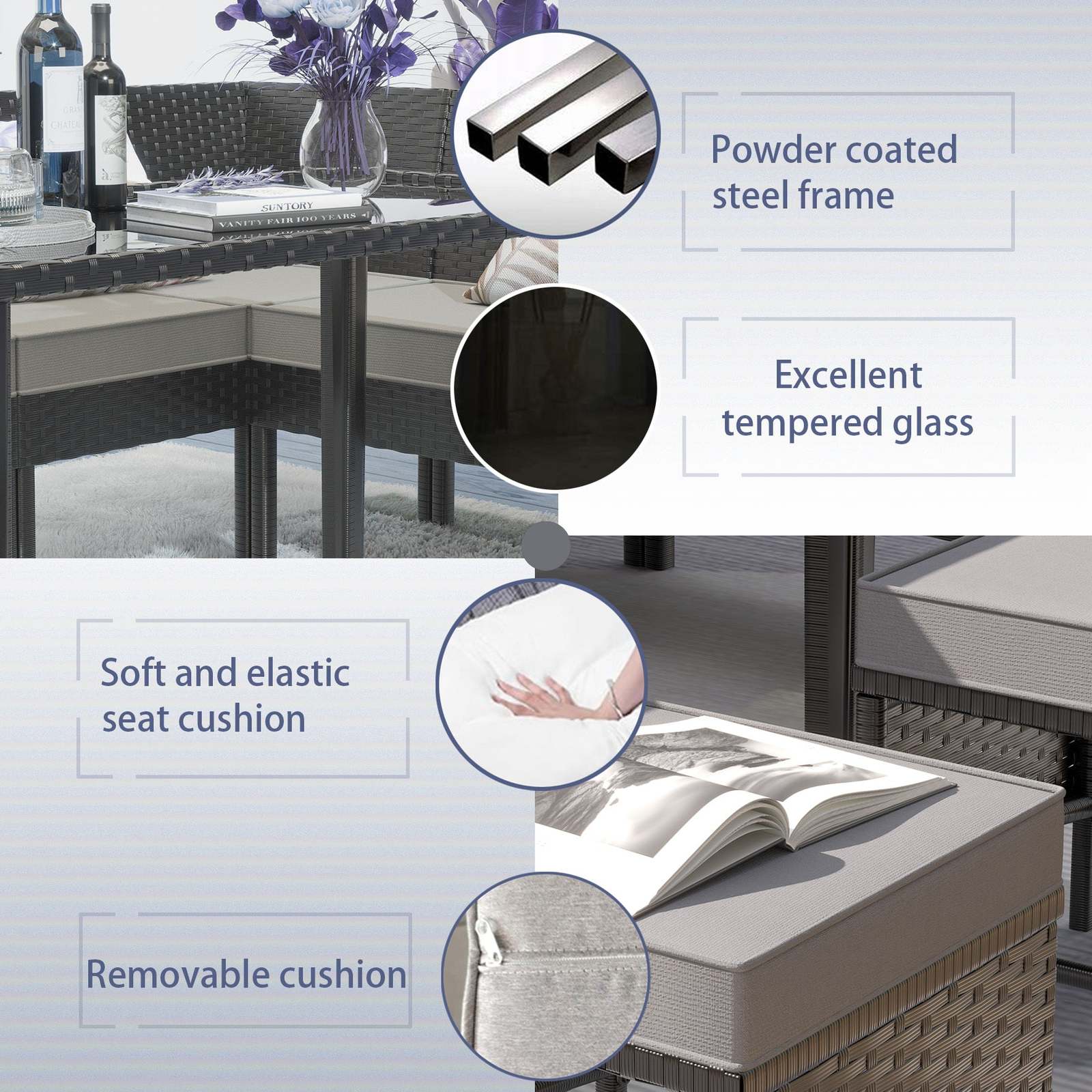 - Modern 7-Pc Small Patio Furniture Set w/ Waterproof Cushions, Glass Table