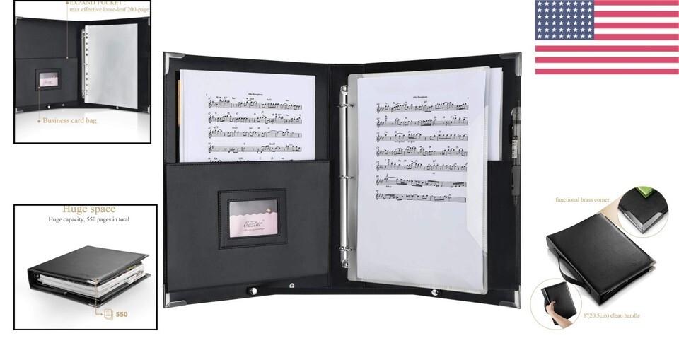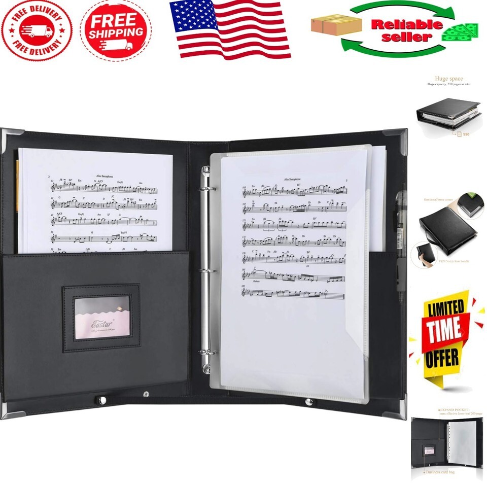- Modern Black Sheet Music Folder - Waterproof 15 Pocket A4 Binder with Strap