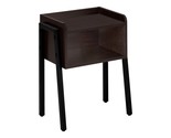 2-tier rectangular accent table in a dark brown espresso finish featuring a tray-style tabletop with raised edges on the sides and back, rounded front edges, and 1 storage cubby