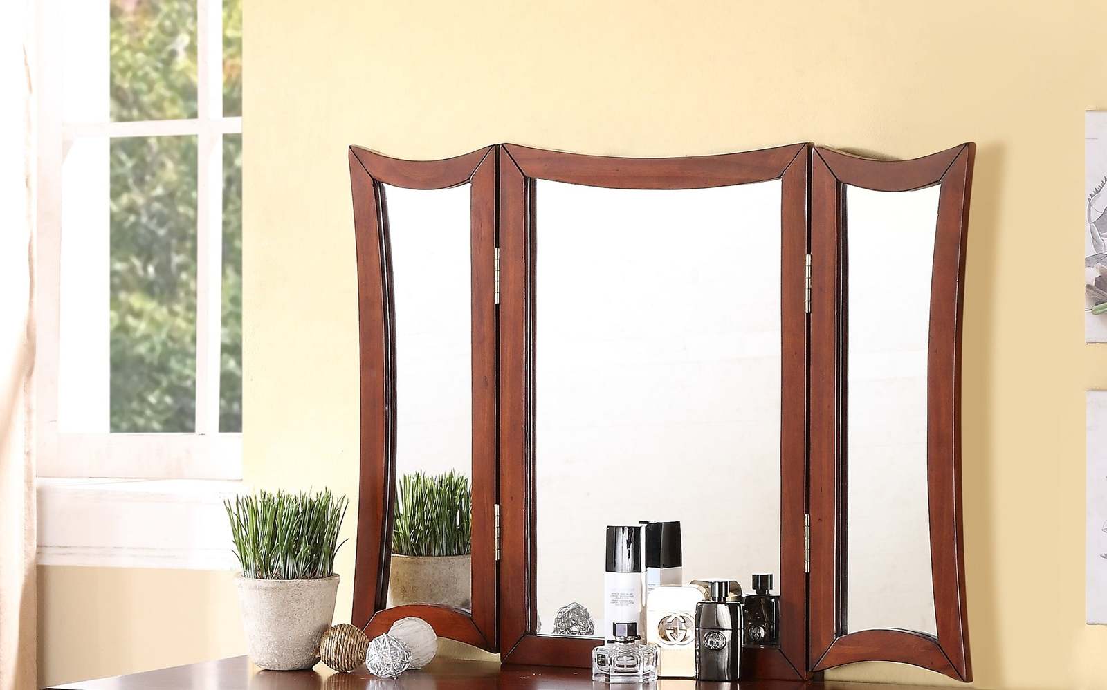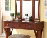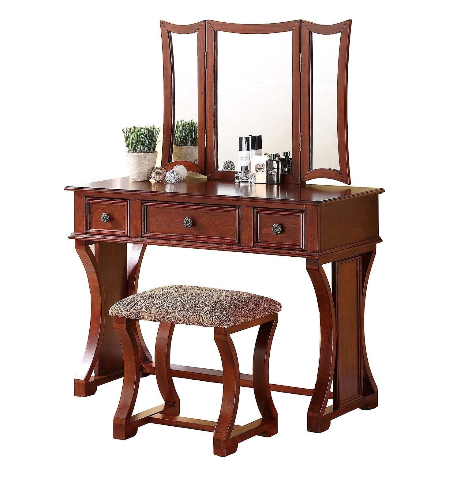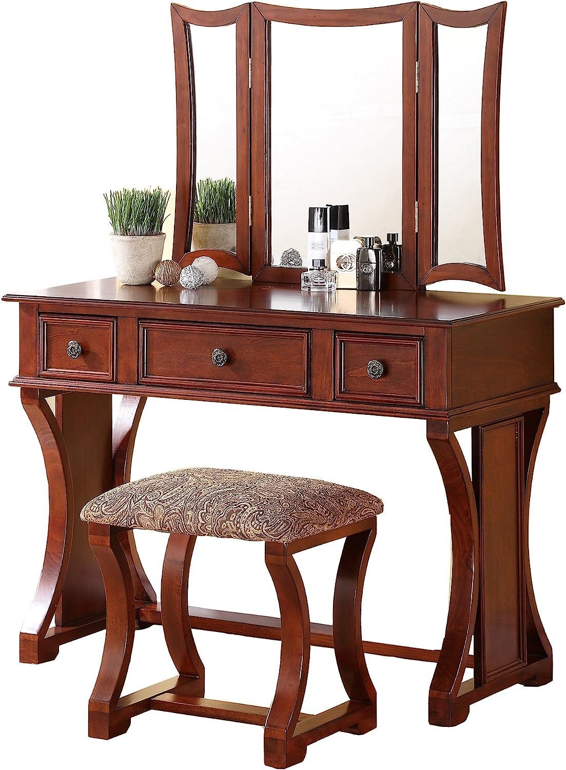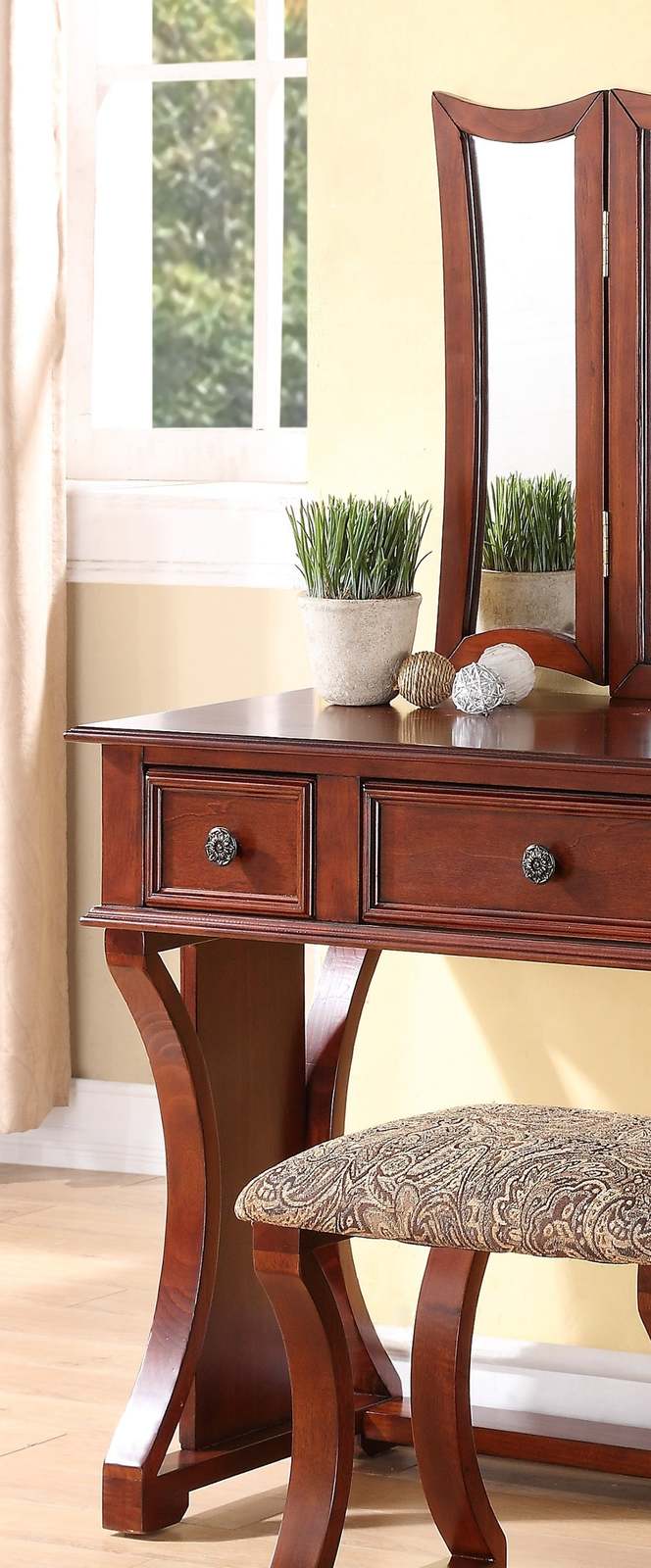 - Modern Cherry Bedroom Vanity Set w/ Stool, Mirror & Drawers