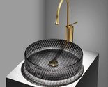- Modern Diamond Pattern Glass Vessel Sink Luxury Round Bathroom Wash Basin, Abo