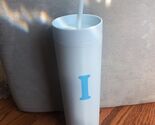 Modern Expressions BLUE Tumbler With Straw- letter I