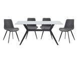 With a look that enhances the display of your casual dining space, the Brixley Collection exemplifies the understated refinement of modern design. The contemporary rectangular table?s sintered stone marble-look is complemented by black powder-coated metal legs, their angular design furthering the modern profile and aesthetic of the collection. The mottled gray faux leather seats of the collection?s side chairs are supported by powdered coated black metal legs.