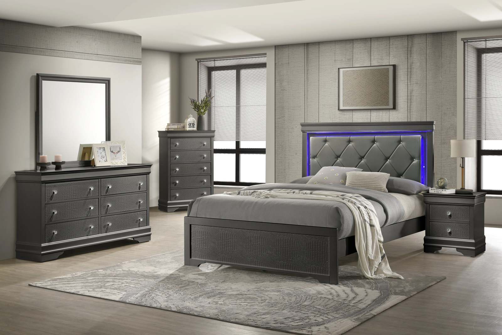 - Modern Gray Wood Twin Bedroom Set - Denver 4 Pc